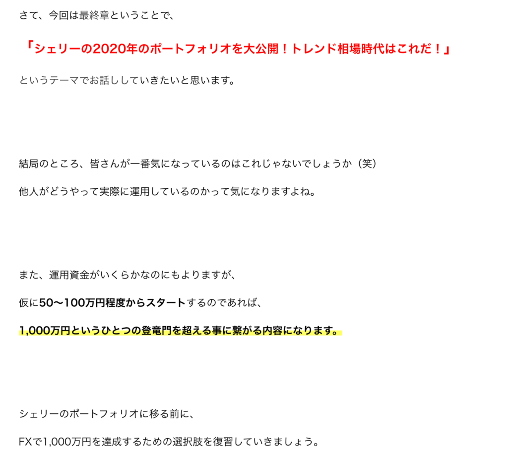 【FXで1,000万稼ぐロードマップマガジン:最終章】シェリーの2020年のポートフォリオを大公開!トレンド相場時代はこれだ!
