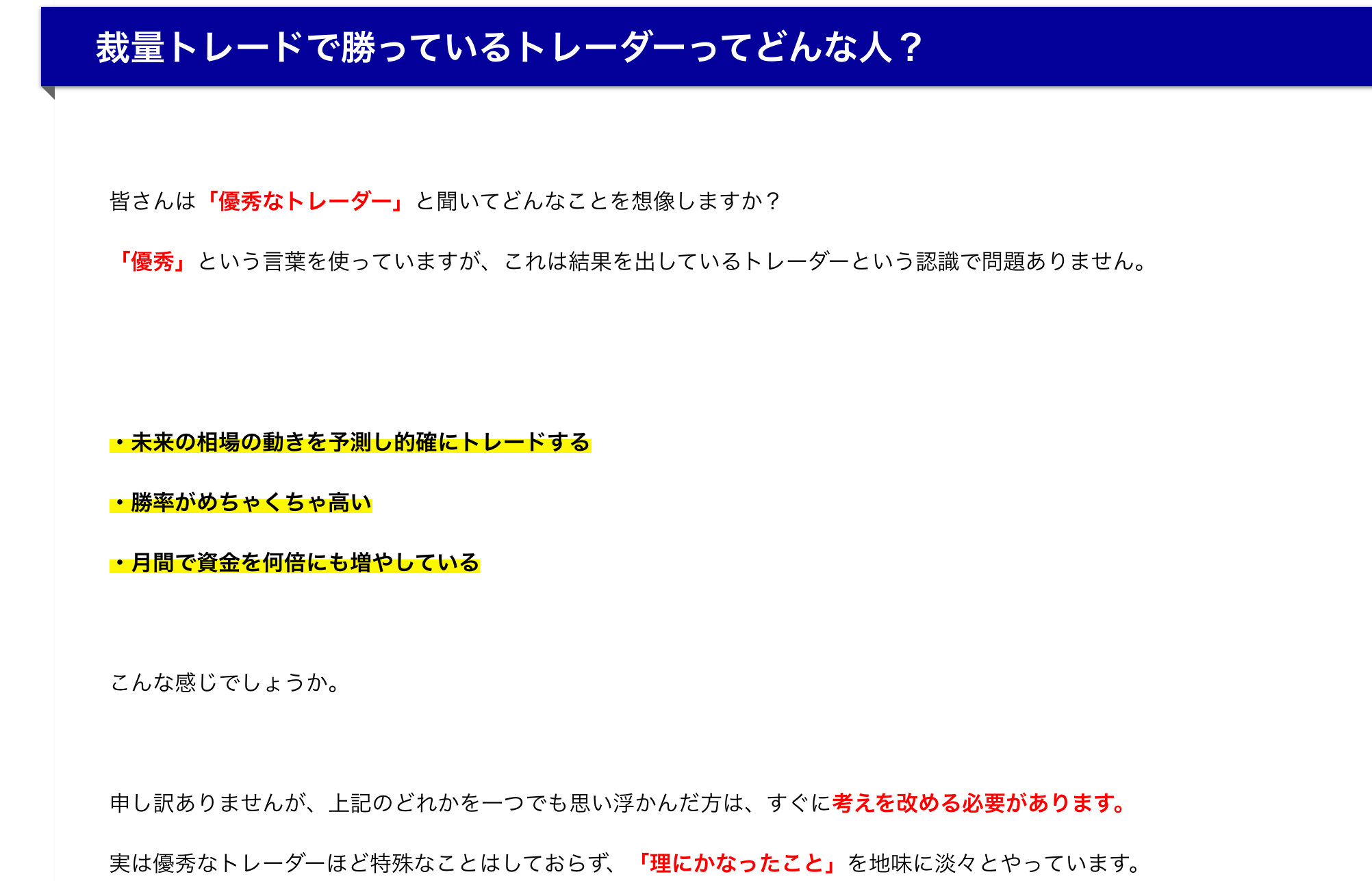 裁量トレードで勝つ方法とはズバリ何なのか?について言及しています。